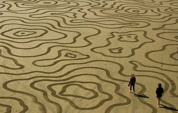 در منطقه سان فرانسیسکو هنرمند چشم انداز ، آندرس آمادور نقاشی های باورنکردنی را در مقیاس بزرگ بر روی شن و ماسه ، تنها با یک چنگگ و در بعضی موارد با کمک افراد داوطلب ایجاد کرده است . این واقعا شگفت انگیز است که او ساعت ها وقت خود را صرف می کند تا چنین نقاشی را خلق کند و در عین حال با توجه به نزدیکی به ساحل هیچ ثباتی ندارد . آمادور کارگاه نقاشی خود را بر اساس سایت خود ، تنها 2 ساعت پیش از جذر و مد برای دانش آموزان خود برگزار میکند .